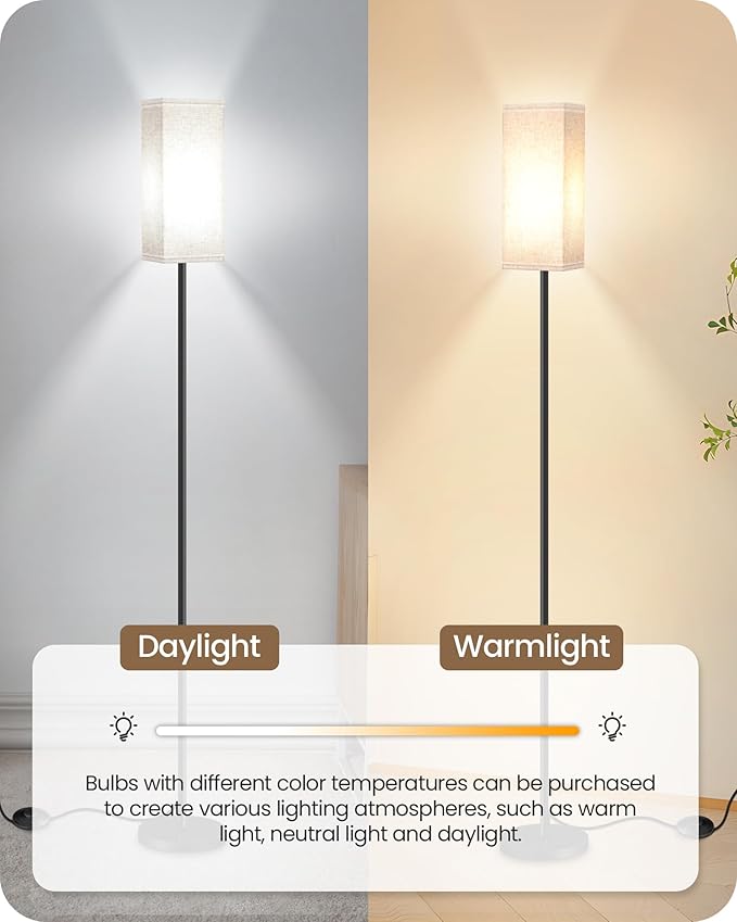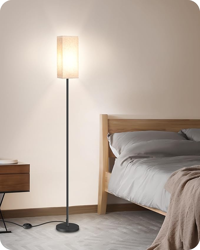Floor Lamp, Pole Lamp with Foot Switch, Modern Standing Lamp Lampshade, Minimalist Freestanding Lamp (Bulb Not Included), for Living Room, Bedroom Office FCC Listed, Black and Beige E07LD05
