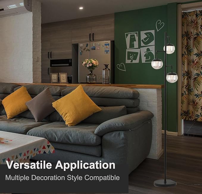 About This ✨Elegant and versatile design: FIQEVS 3 globe crystal floor lamp is a sleek matchs crystal globe that looks...