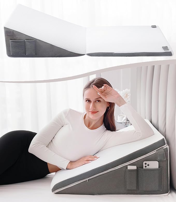Bed Wedge Pillow for Sleeping, 10-in-1 Adjustable Memory Foam Wedge Pillow for Acid Reflux, 2-in-1 Incline Wedge Pillows for After Surgery, Snoring, Back Pain Pillow Wedge