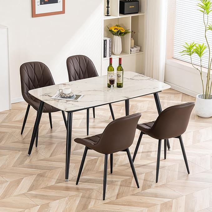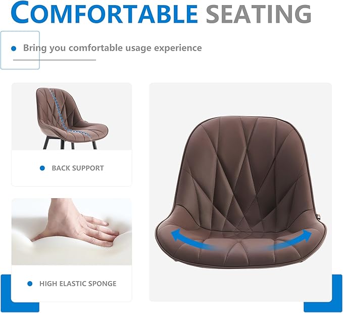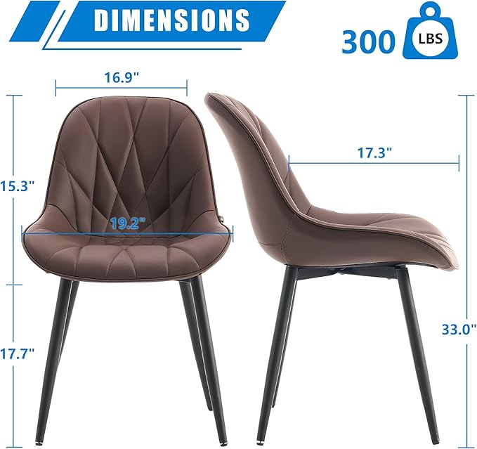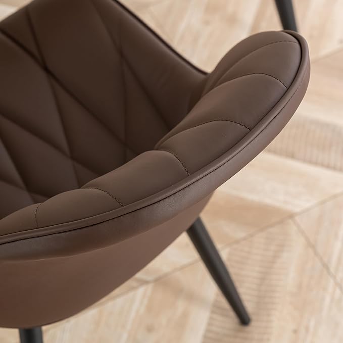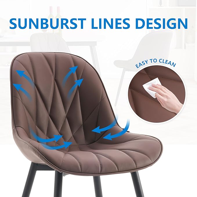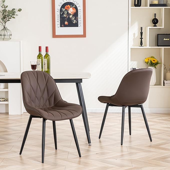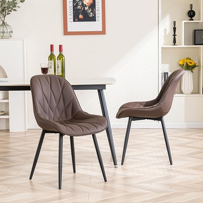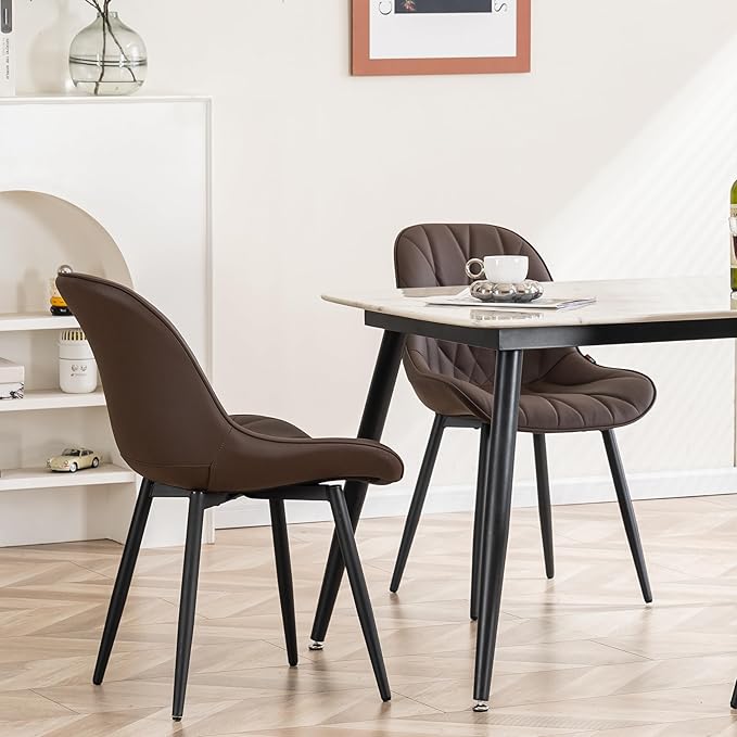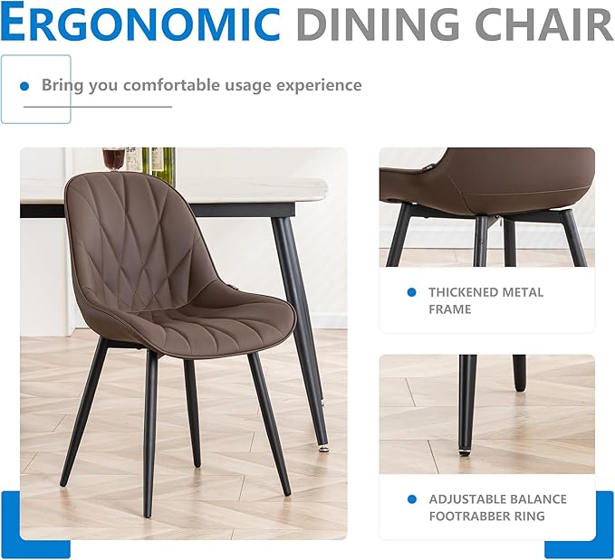 YOUNIKE Dining Chairs Set of 2, Espresso DarkBrown Modern Kitchen Chairs with Adjustable Feet, Mid Century Faux Leather Upholstered Dining Room Chairs, 300LBS Support Elegant Dinning Chairs