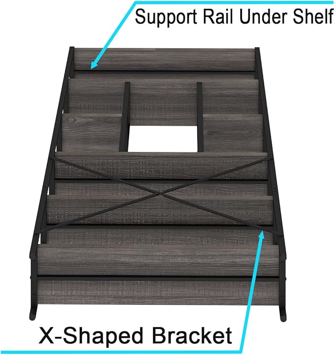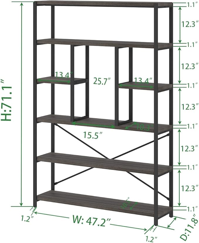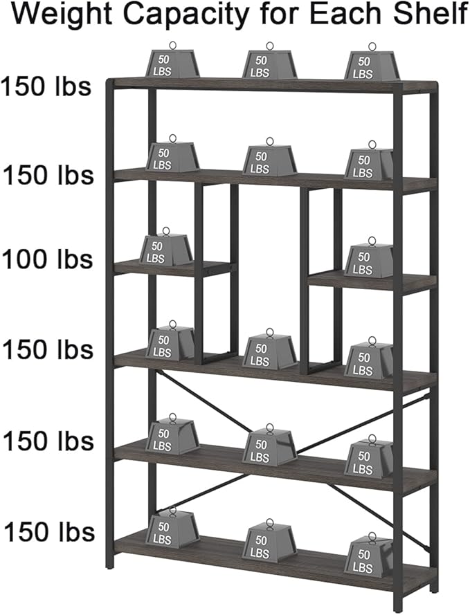 LVB Industrial Tall Bookshelf, Modern Wood Metal 6 Tier Book Shelf, Farmhouse Large 6 Shelf Etagere Bookcase, Open Wide Storage Bookshelves and Bookcases for Bedroom Living Room Office, Dark Gray Oak