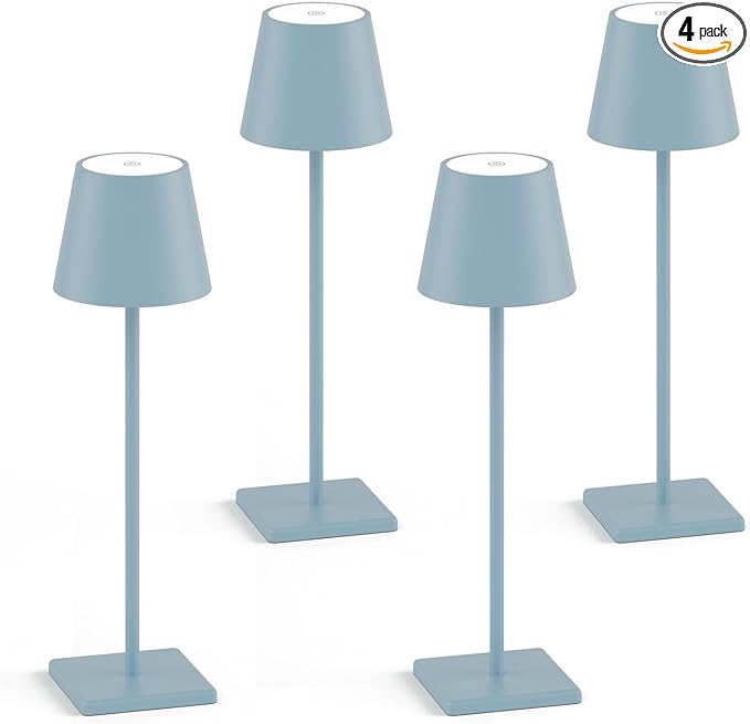4 Packs Rechargeable LED Table Lamp,6000mAh Outdoor Cordless Table Lamp Waterproof Portable, Stepless Dimmable Table Lamp for Restaurant/Bedroom/Outdoor (Blue)