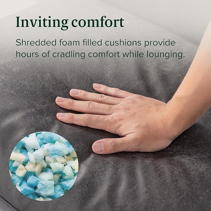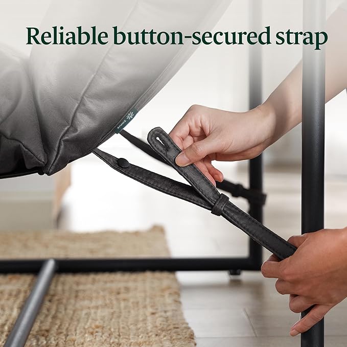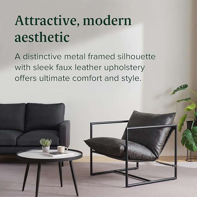 ZINUS Aidan Faux Leather Sling Accent Chair, Metal Framed Armchair with Shredded Foam Cushioning, Slate Grey