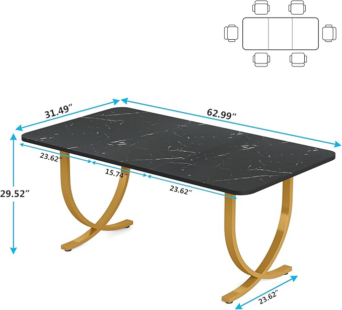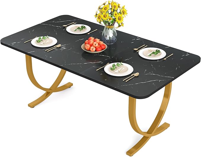 Dining Room Table, Kitchen Table with Faux Marble Table Top and Gold Metal Legs