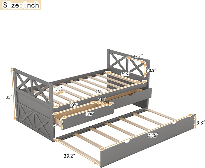 About This Wood ✅ Robust and Long-Lasting: Our daybed frame is meticulously crafted from high-quality pine wood, ensuring exceptional durability...