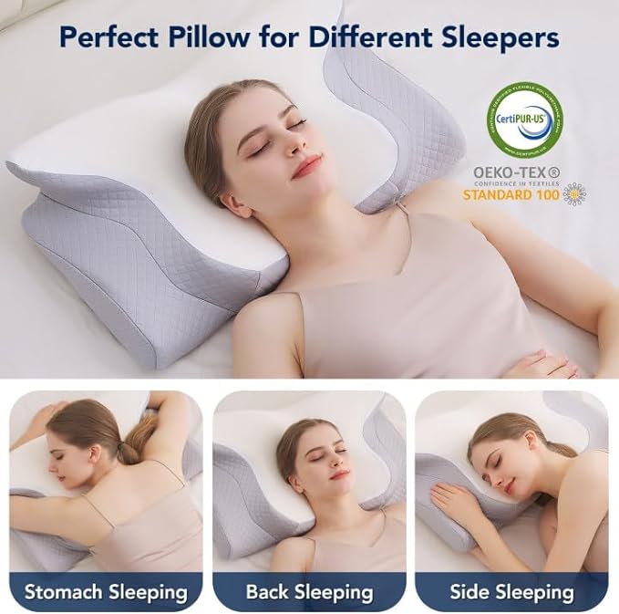 Cervical Pillow for Neck Pain Relief,Orthopedic Contour Memory Foam Pillow for Bed sleeping Ergonomic Neck Support Pillows for Side,Back & Stomach Sleepers with Cooling Pillowcase Queen Size Gray