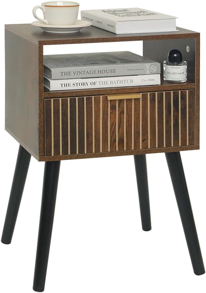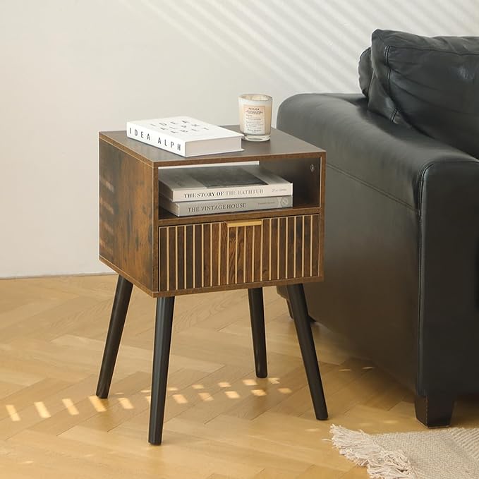 MaxSmeo Small Nightstand Wood Bedside Table with Drawer, Modern End Table for Bedroom and Small Spaces, Solid Wood Legs, Easy Assembly, Rustic Brown and Black