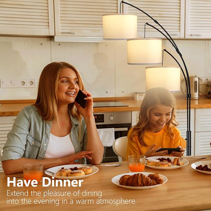 About This 【Versatile Modern Arc Floor Lamps For Living Room】Lambaolom Sofa Arched Lamp has 3 extension arms and 3 beige...