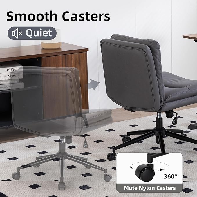 Armless Office Chair with Wheels Wide Desk Chair Leather Mid Back Accent Chair Padded Swivel Vanity Chair for Girl Women Computer Task Chair for Home Office (Suede Fabric,Gray)