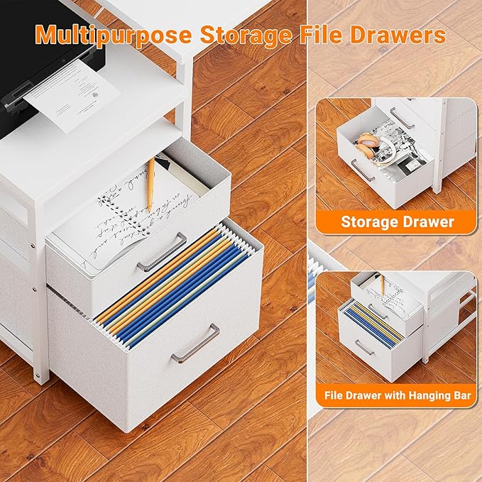 About This 【Extra Roomy Drawers and Large Work Space】 The L shaped desk has plenty of storage fabric drawers and...