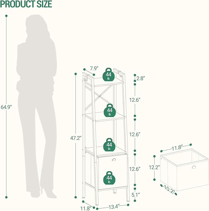 About This Flexible Drawer: The metal staircase bookshelf is equipped with a large cloth drawer, which is lightweight and soft,...