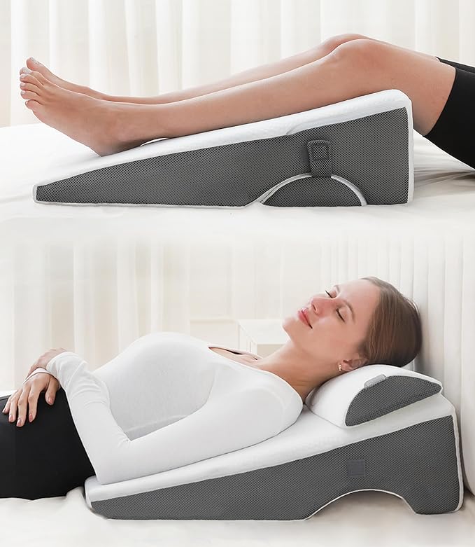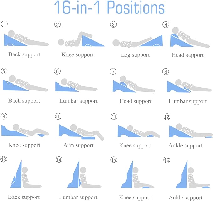Bed Wedge Pillow for Sleeping, 6 & 7.5 & 10 Inch Adjustable Height Wedge Pillows for After Surgery, 16-in-1 Memory Foam Triangle Pillow Wedge Relieve Acid Reflux, Gerd, Snoring