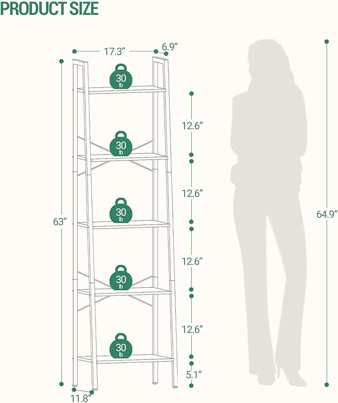 About This 【Industrial Design】Combining the rustic brown shelves and ladder design, this ladder shelf gives an eye-catching look and injects...