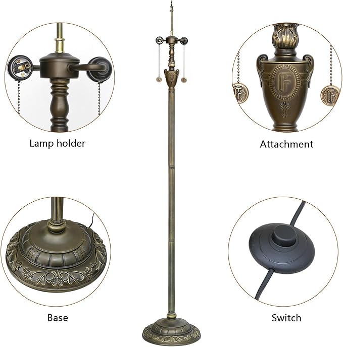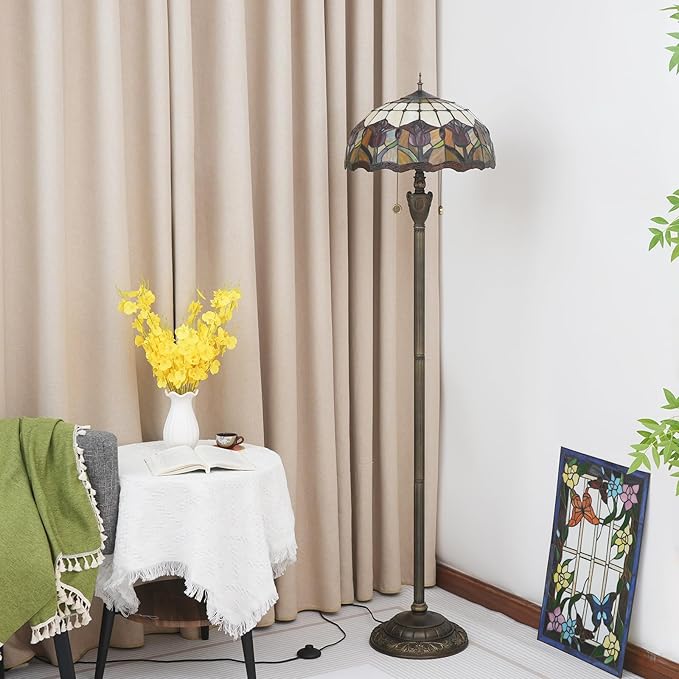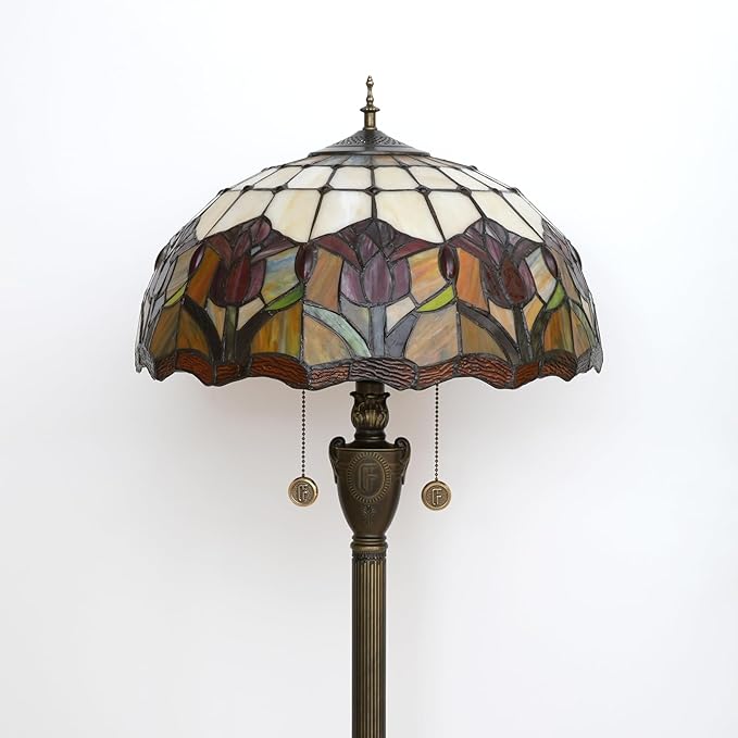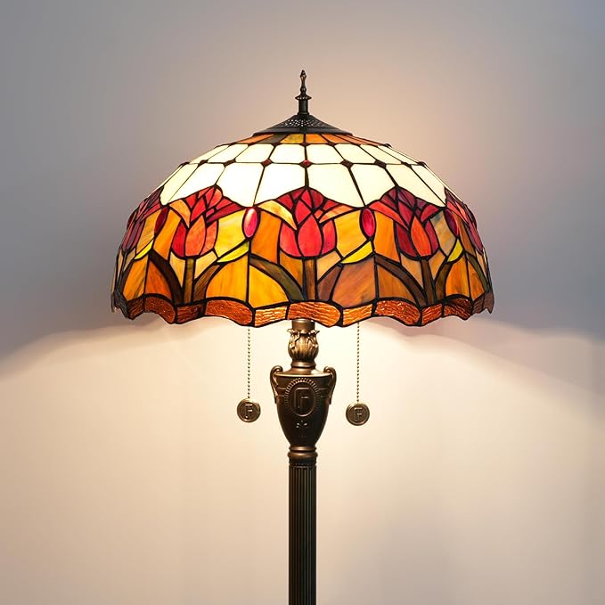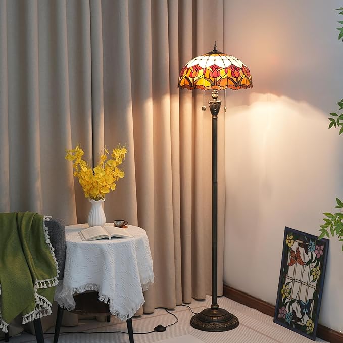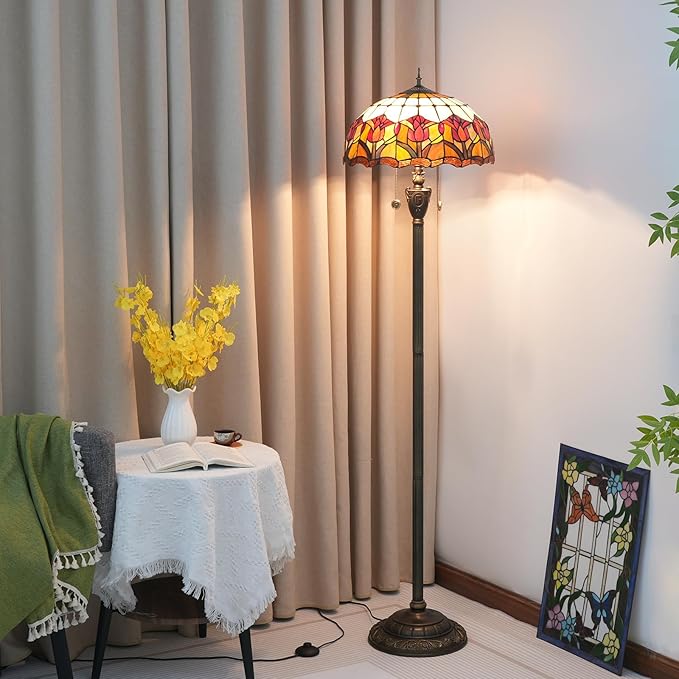 About This 【Blivuself red tulip Floor Lamp Size】Stained Glass Lampshade Width:16 Inches (40cm), Total Height: 64 Inches (163cm), Base Width:...
