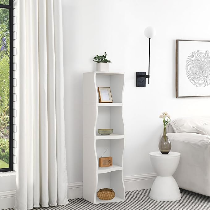 ECYIL Double Layered Independent Storage Rack, Full Circular Color Blocking Bookshelf, Suitable for Home, Office, Living Room, etc (white)