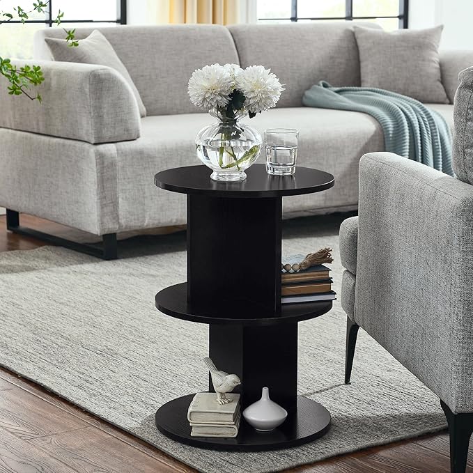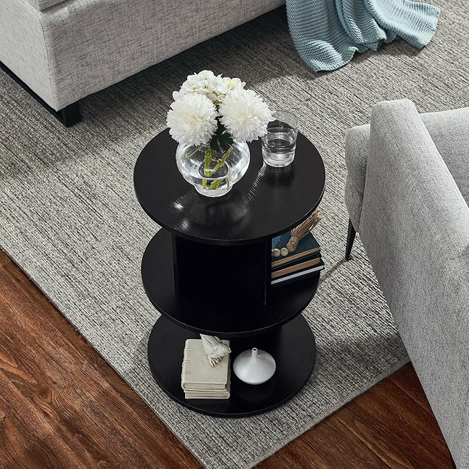 ECYIL Double Layered Independent Storage Rack, Full Circular Color Blocking Bookshelf, Suitable for Home, Office, Living Room, etc (black)