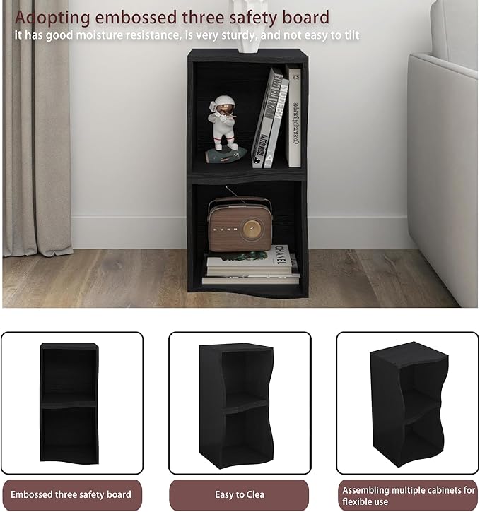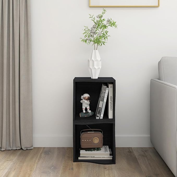 ECYIL Double Layered Independent Storage Rack, Full Circular Color Blocking Bookshelf, Suitable for Home, Office, Living Room, etc (black1)