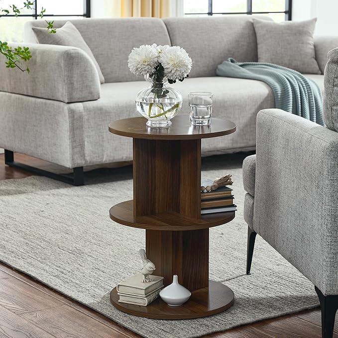 ECYIL Double Layered Independent Storage Rack, Full Circular Color Blocking Bookshelf, Suitable for Home, Office, Living Room, etc (walnut)