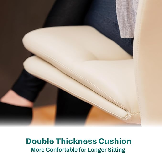Criss Cross Chair with Wheels - Cross Legged Office Chair, Wide Armless Desk Chair Comfy Swivel Vanity Chair for Home Office, PU Leather - Beige