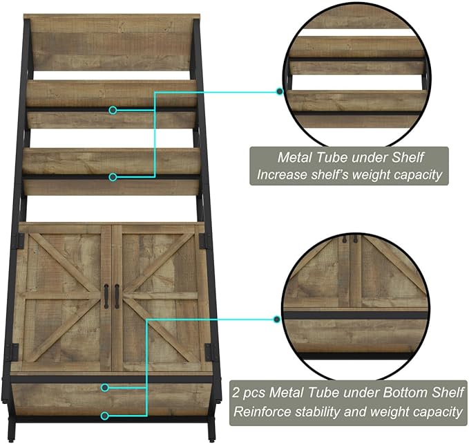 Rustic Bookcase with Storage Cabinet, Farmhouse Tall Bookshelf with Doors, Industrial Wood Metal Book Shelf for Home Office, Living Room, Bedroom (Rustic Oak)