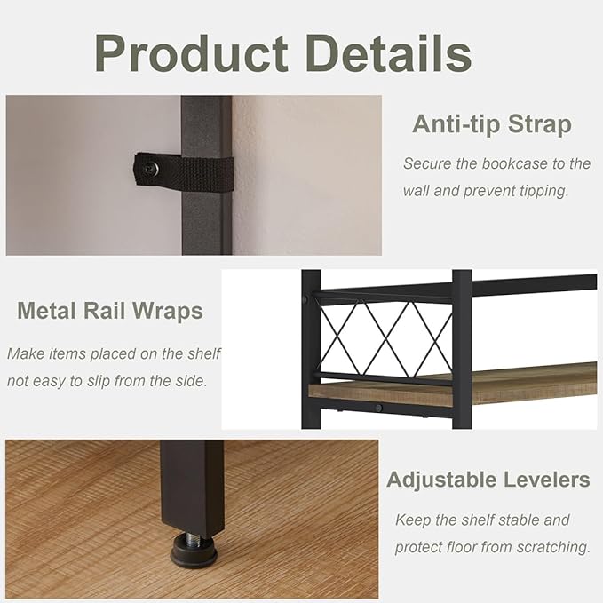 About This 【Rustic Bookcase with Doors】This farmhouse tall bookcase features 3 spacious open shelves that are ideal for displaying books,...
