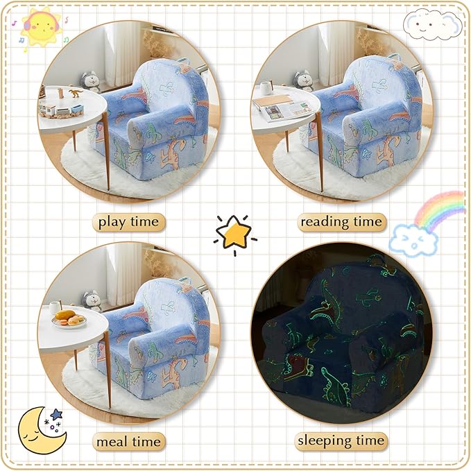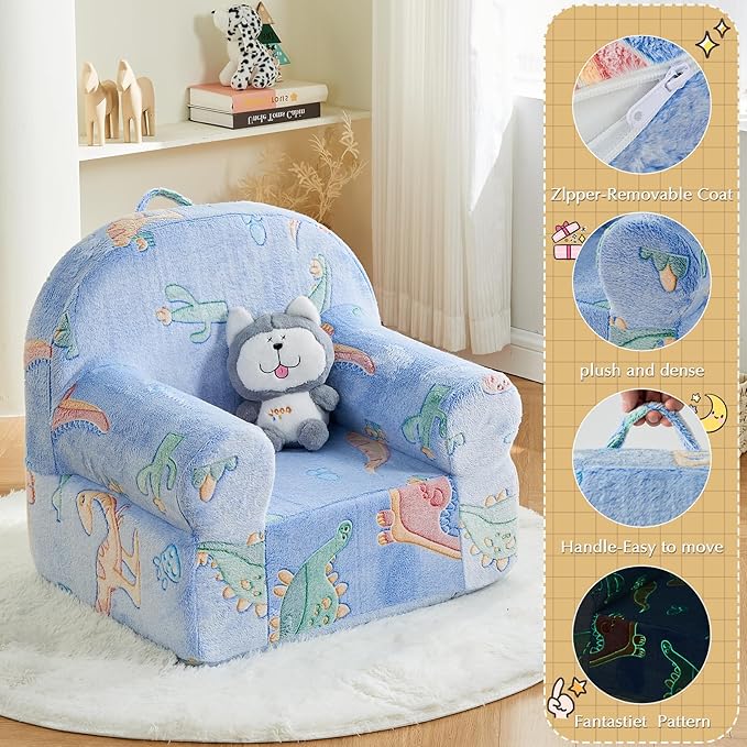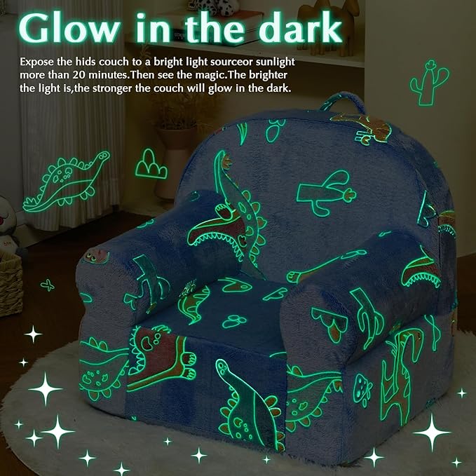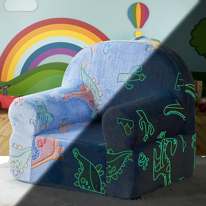 Toddler Chair Kids Plush Chair Kids Sofa Sherpa Kids Chairs, Toddler Couch Bean Bag Chairs for Kids Gaming Chair for Kids Glow in The Dark, Dinosaur