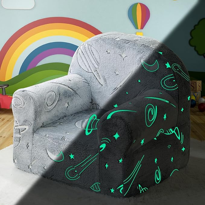 About This Glow in the Dark: The kids sofa chair is made of glowing plush polyester and is filled with...