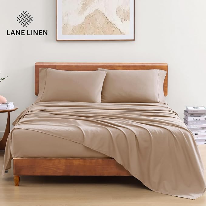 LANE LINEN 100% Organic Cotton California King Sheets Set, 4-Piece Organic Cotton Long Staple Percale Weave Ultra Soft Best Bedding Sheets for Bed, Breathable, Fits Mattress Upto 15" Deep - Taupe