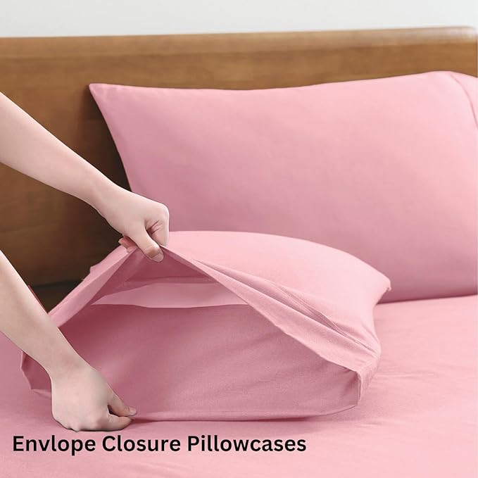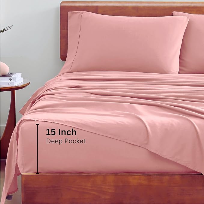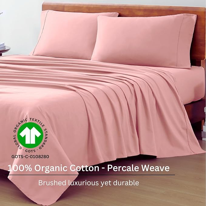 LANE LINEN 100% Organic Cotton California King Sheets Set, 4-Piece Pure Organic Cotton Long Staple Percale Weave Soft Best Bedding Sheets for Bed, Breathable, Fits Mattress Upto 15" Deep - Rose Dawn