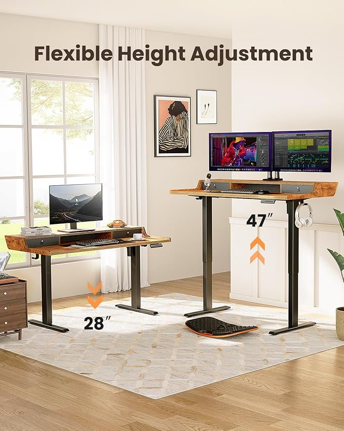 ErGear Electric Standing Desk with Drawers, 40″ x 24″ Gaming Desk with Monitor Stand, C-Clamp Mount Compatible, Home Office Height-Adjustable Desk with Storage Shelf, 4 Preset Heights, Vintage Brown