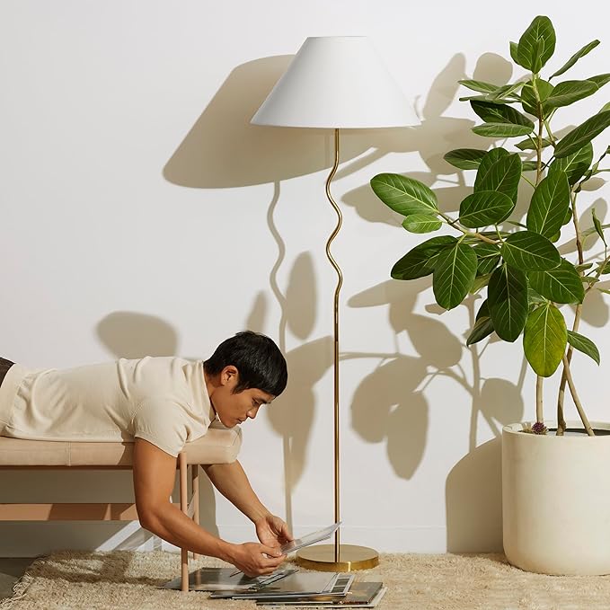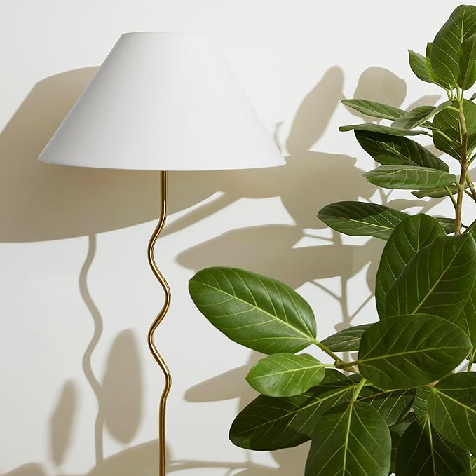 Brightech Squiggle Standing Floor Lamp – Tall Modern Corner Lamp with LED Light Bulb for Bedroom, Living Room, Office – Boho Mid Century Modern Zig Zag Pole Lamp with A-Line Open Shade – Gold/Brass