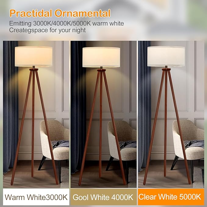 About This 【HIGH QUALITY MATERIAL】The tripod floor lamp is made of high quality wooden tripod, durable. The triangular design keeps...