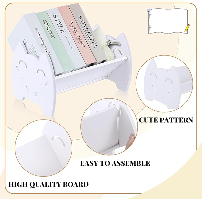2 Pcs Kids Bookshelf Small Desktop Bookshelf Tilted Bookcase for Kids Room Slanted Tiny Table Top Mini Bookshelf Tabletop Bookshelf for Desk Magazine CD Display Organizer Storage Rack, White