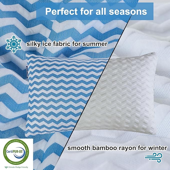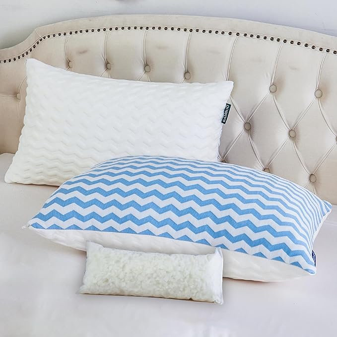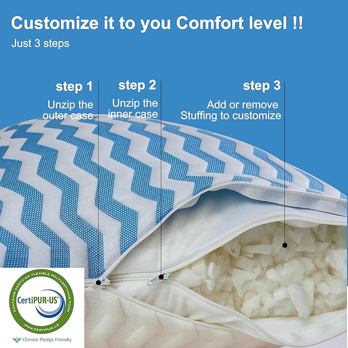 Pillows Queen Size Set of 2- Adjustable Firm Shredded Memory Foam Pillows - Side Sleeper Bed Pillows for Adults with Washable Cover and Bonus Foam Fill