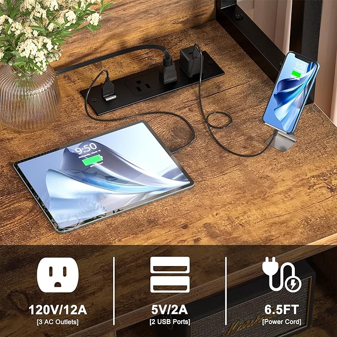 Homieasy File Cabinet with Charging Station, Vertical Filing Cabinet with Lock & Large Drawer, Printer Stand with Storage Shelves, Office Storage Cabinet fits Letter/A4/Legal Size,Rustic Brown