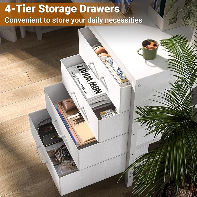 About This Large Storage Capacity with 4 Tier Drawers: Combing L desk with drawer cabinet into one, it is convenient...