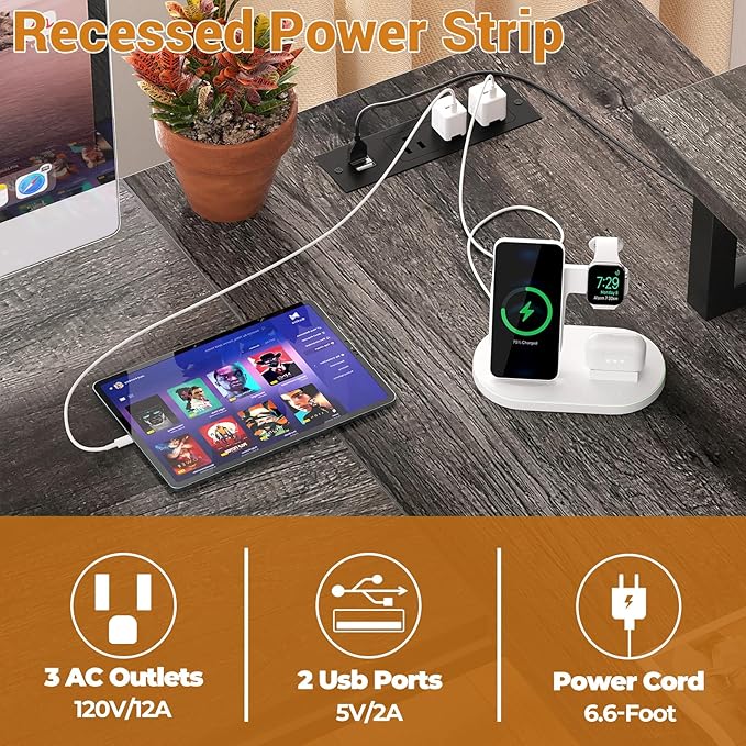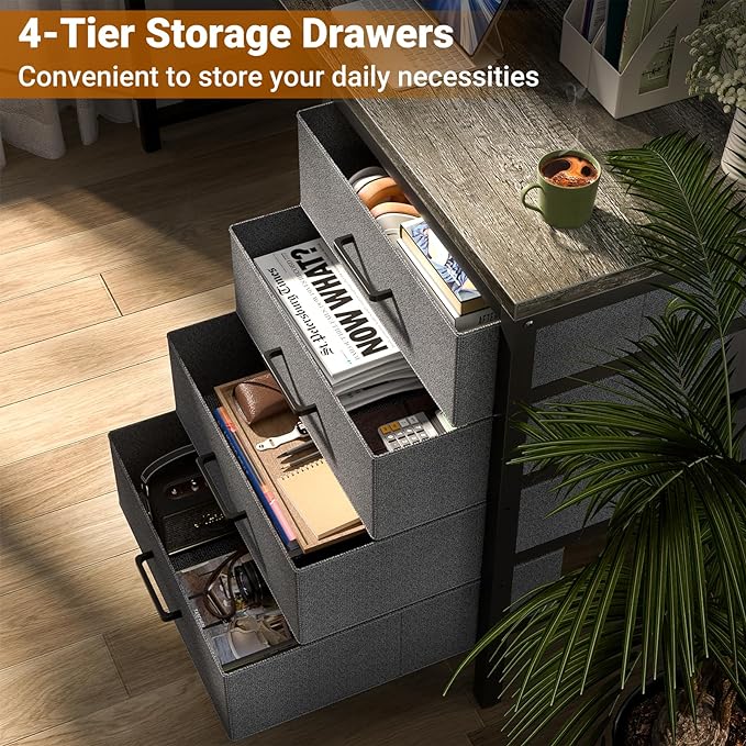 About This Large Storage Capacity with 4 Tier Drawers: Combing L desk with drawer cabinet into one, it is convenient...