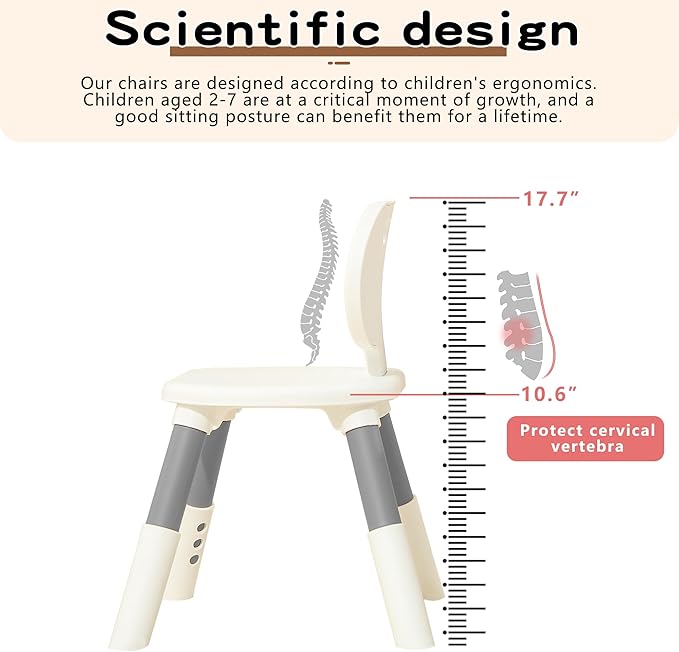 3 Level Height Adjustable Kids Chairs Plastic Preschool Chair Durable and Lightweight Child Chair with a Maximum Load Capacity of 220 pounds Suitable for Day Care, Classroom, and Home (2-Pack Grey)