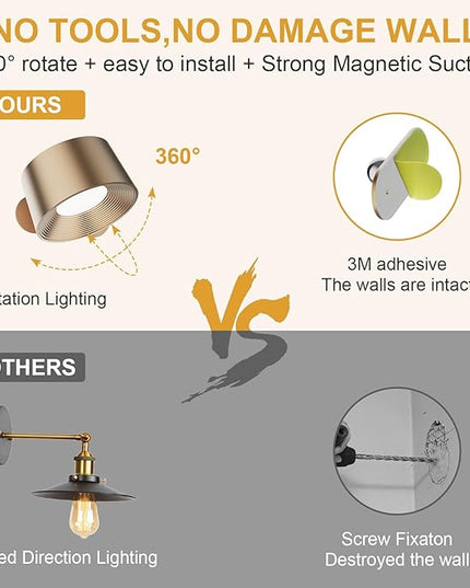 About This 【360°Free Rotation】: This cordless reading lamp has a 360°rotating magnetic ball, so you can DIY the light source...