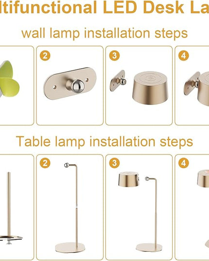 ZAYAZ LED Wall Sconces, LED Wall Mounted Lamps, LED Reading Lights for Bedroom, Wireless Lamp with 360° Rotate Magnetic Ball with FreeGift Desk Lamp Bracket for Table Lamps(Rose Gold)