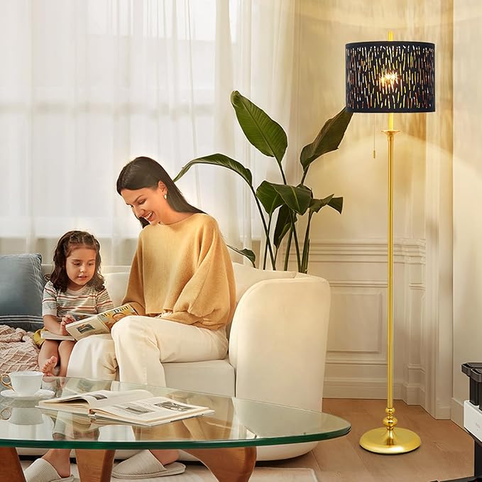 About This 【60in Simple Standing Floor Lamps for Living Room】 The Gold pole floor lamp for bedroom made of high-quality...