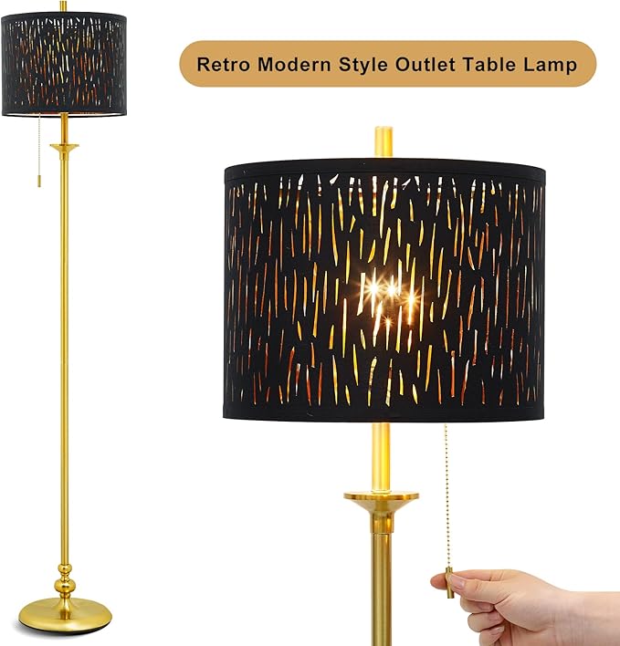 Luvkczc Traditional 60" Tall Standing Lamp for Living Room with Gothic Lampshade&Pull Chain - Tall Corner Reading Standing Lamp for Bedroom, Office, Home Decor (Bulb Included)