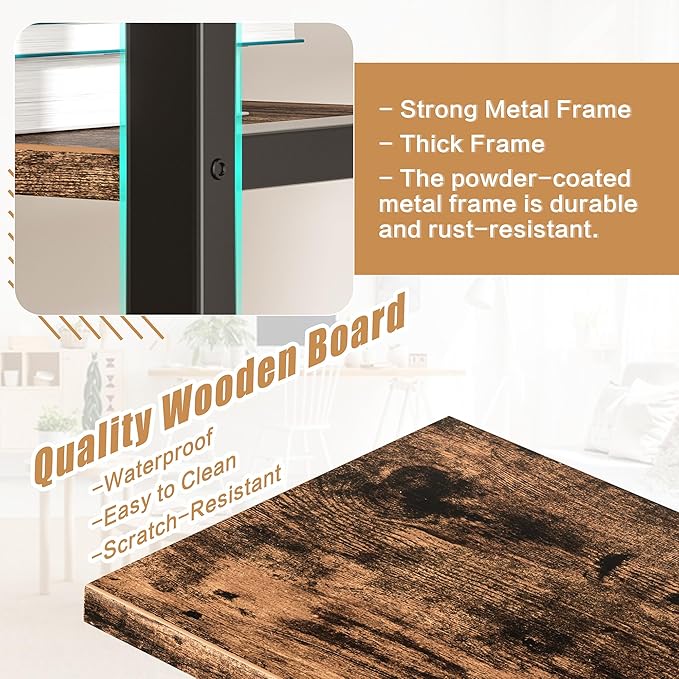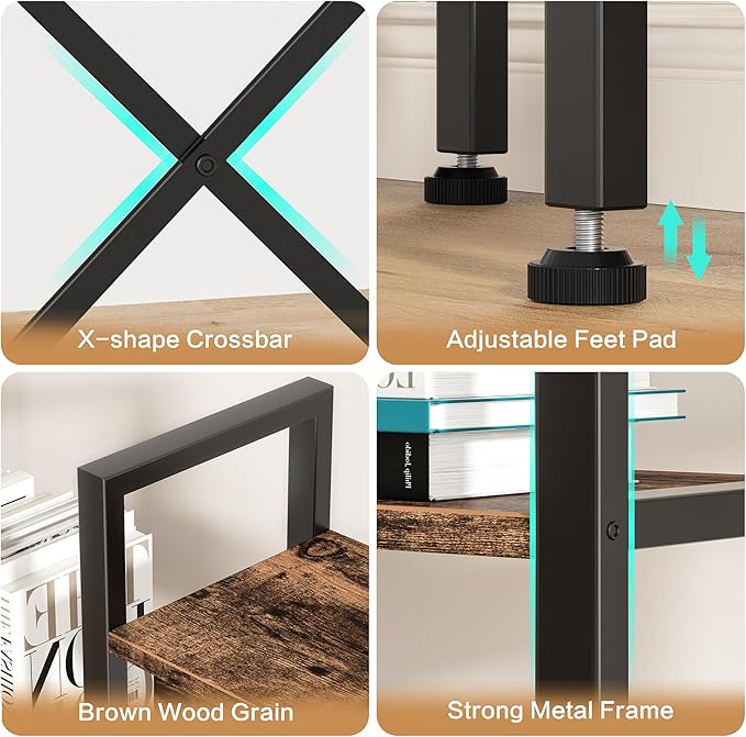 Shintenchi Industrial Bookcase,71.6” Triple 4 Tier Bookshelf with 11 Open Display Shelves,Large Etagere Bookshelf Open Record Player Shelves,Wide Book Shelf Book Case for Home & Office,Rustic Brown