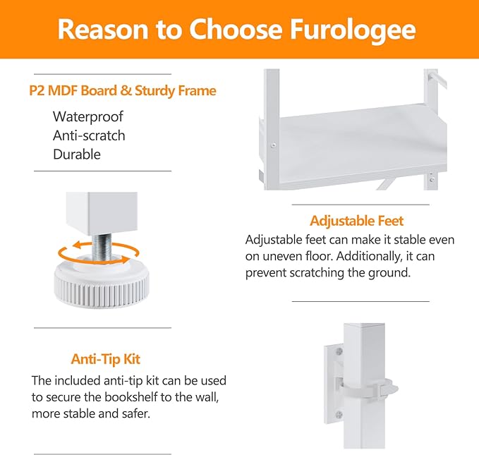 About This [Fit for Any Room]: Our white tall bookcase compact design means it takes up a small floor space...
