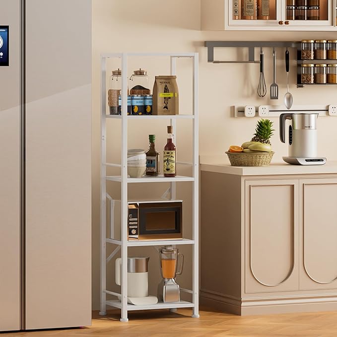 Furologee White Bookshelf 5 Tier Bookcase, Tall Narrow Bookshelves, Modern Freestanding Shelf Units, Metal and Wood Display Storage Corner Shelves Organizer for Bedroom, Living Room, Office, Bathroom