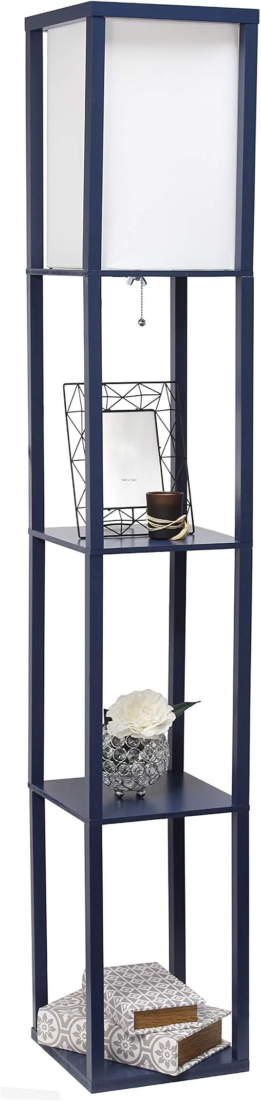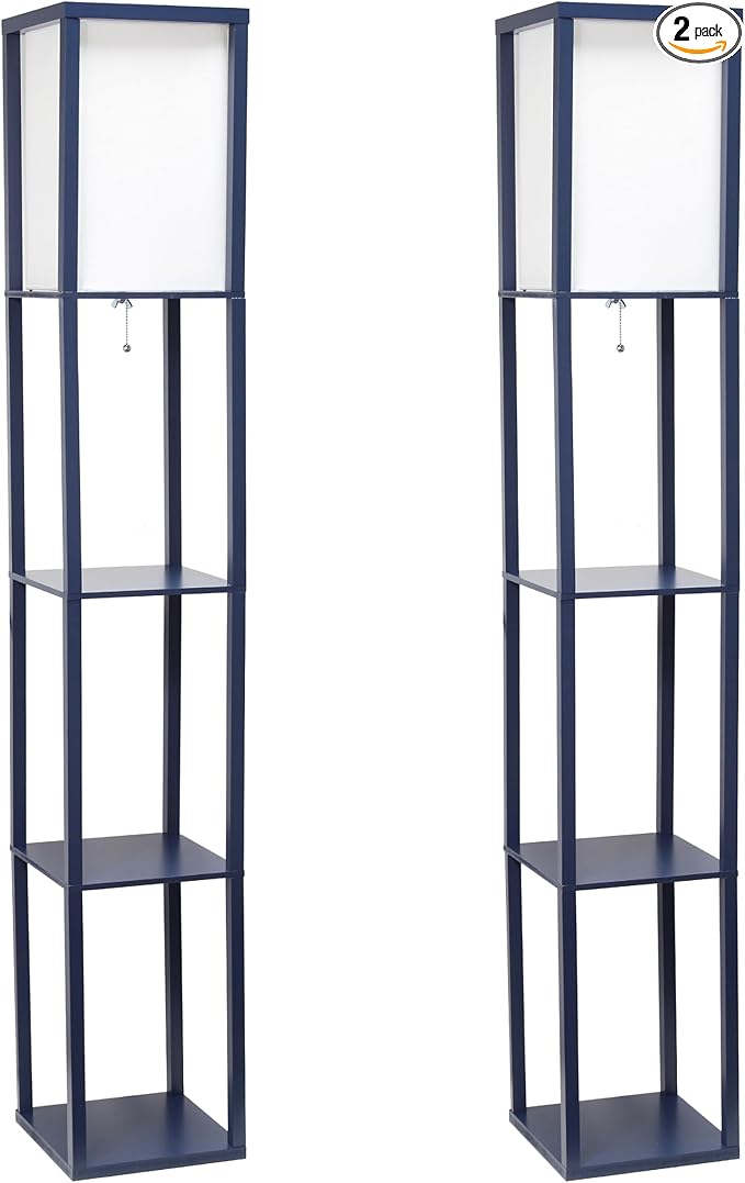 Simple Designs LF1014-NAV-2PK Three Shelf Etagere Organizer Storage Floor Lamp 2 Pack Set with White Linen Shade for Living Room, Bedroom, Office, Hallway, Navy Blue
