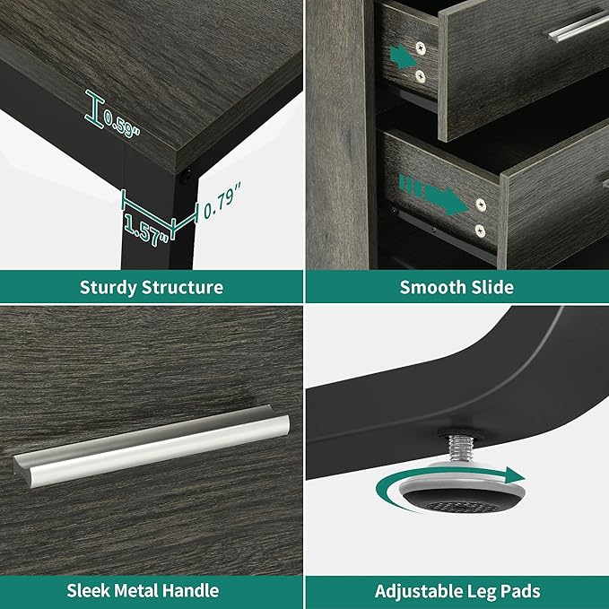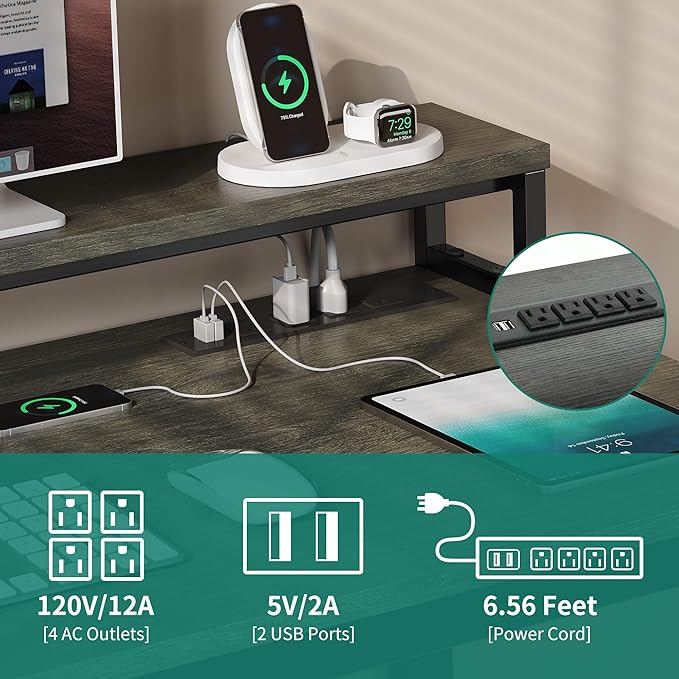 About This Convenient charging station: This L-shaped computer desk features 2 USB ports, 4 power outlets & a 6.56ft power...
