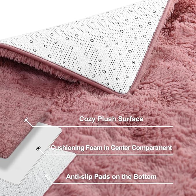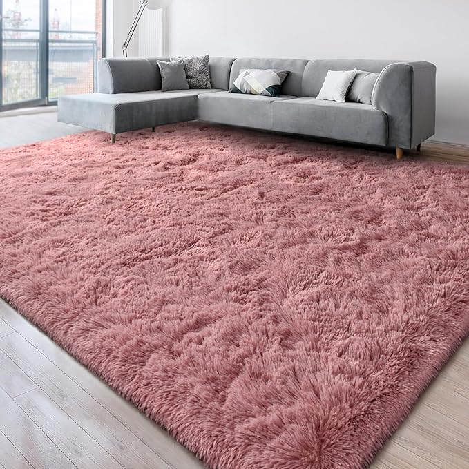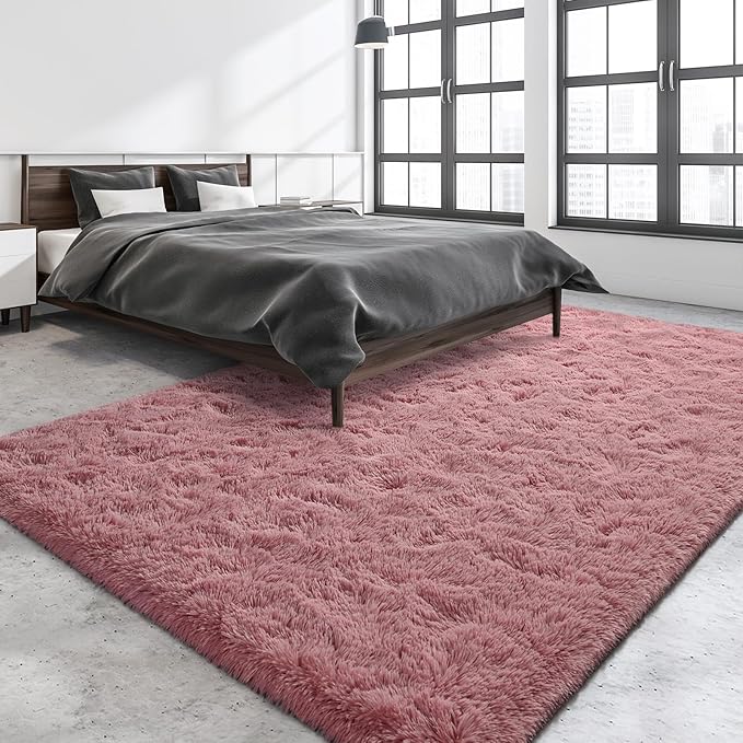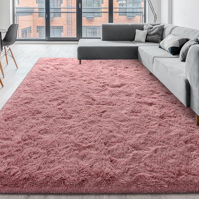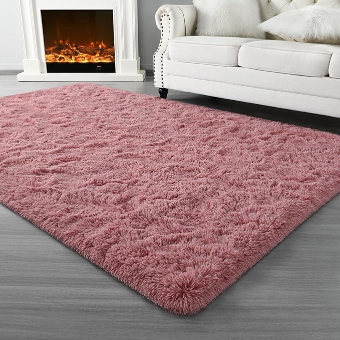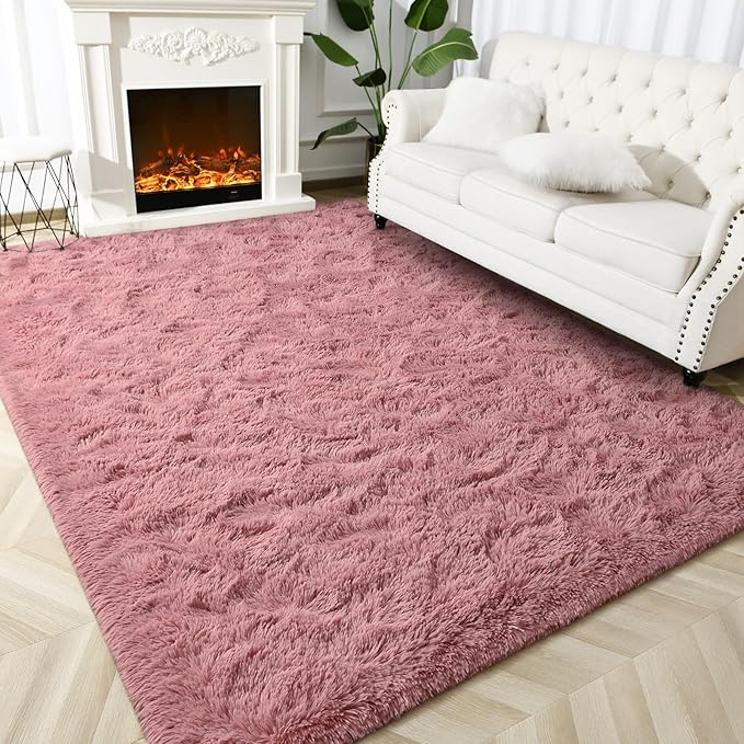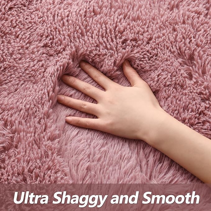 Super Soft Fluffy Shaggy Rugs for Living Room Bedroom, Fuzzy Plush Area Rugs for Girls Kids Room Nursery Home Decor, Furry Dorm Rug Cute Non-Slip Indoor Floor Carpet 6x9 Feet, Blush