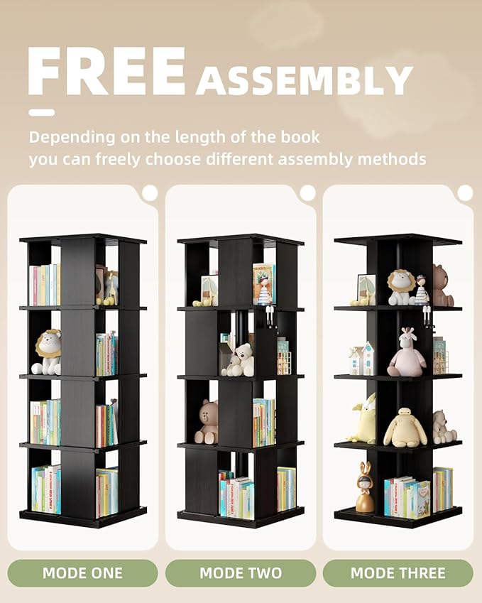 About This 【360° Spinning Bookshelf】: Crafted from high-quality pine wood, ensuring durability and stability, our swivel bookcase rotates seamlessly through...