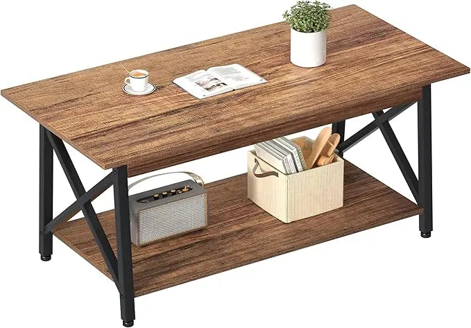 GreenForest Coffee Table with Storage, 39inch Modern Coffee Tables for Living Room, X-Frame Design Farmhouse Coffee Table Space Saving Living Room Tables, Easy Assembly, Walnut